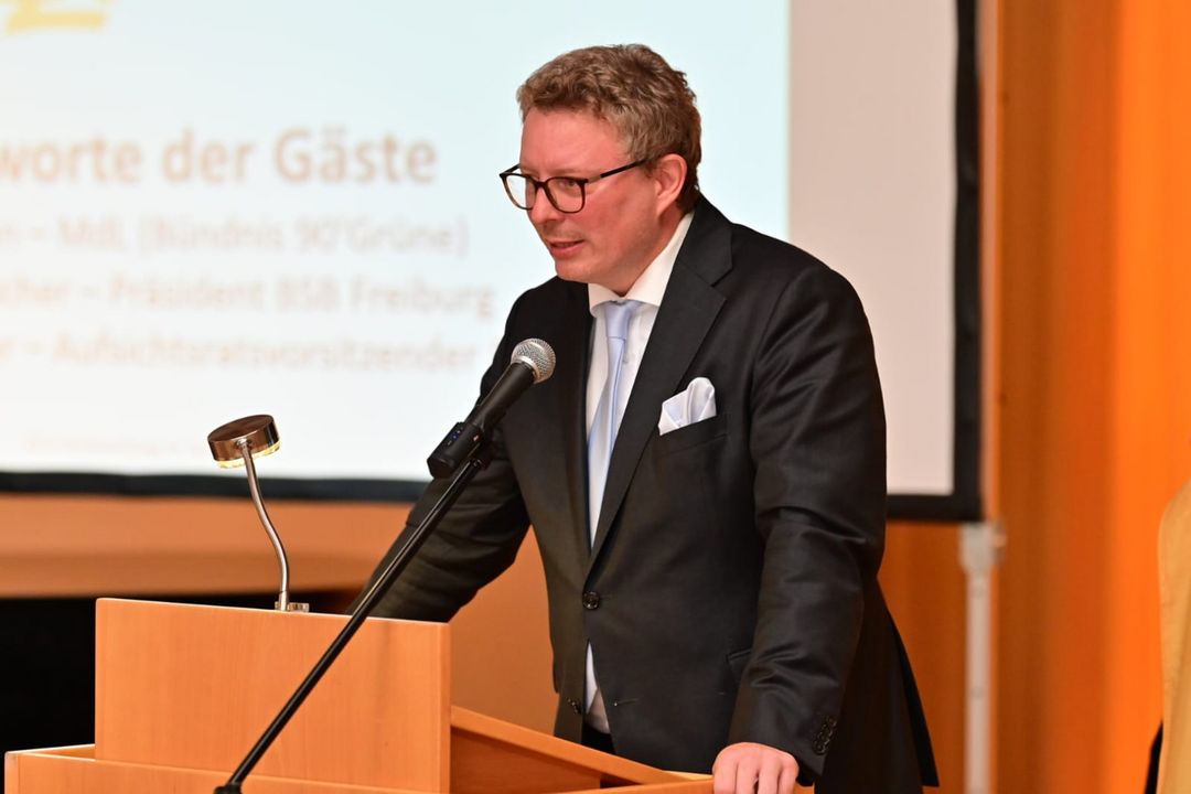 Von den Verantwortlichen der LG Salemertal und des Bezirk Hegau-Bodensee festlich geschmückt, trat im Rahmen des Festaktes Prof. Dr. Ralf Roth an das dortige Rednerpult. Mit seinem Vortrag unter dem Titel „Klimafit. Wandlungsstark. Zukunft gestalten im Sport.“ sprach er in eindrücklichen Worten über die Risiken aber auch die Chancen, die klimatischen Veränderungen für den Sport, insbesondere die Leichtathletik mit sich bringen. „Zukunft gestalten heißt: Menschen in Bewegung und Gemeinschaft bringen“, so Roth. Mit seinem Vortrag lud er ein, den Sport als gesellschaftlichen Motor für eine nachhaltige Zukunft zu begreifen – klimafit, wandlungsstark und voller Gestaltungskraft. Er zeigte auf, wie Vereine und Verbände Verantwortung übernehmen, Chancen nutzen und mit konkretem Handeln ihre Zukunft gestalten können. Prof. Dr. Ralf Roth leitet das Institut für Outdoor Sport und Umweltforschung und ist Senatsvorsitzender an der Deutschen Sporthochschule Köln. Er hat seine Wurzeln in Südbaden, sein Arbeitsschwerpunkt liegt in der Sportraumforschung. Dabei entwickelt er zukunftsfähige Strukturen, Umweltbedingungen und Settings für den Breiten- und Spitzensport. Zudem leitet er den Beirat ‚Umwelt und Sport‘ der Bundesregierung.