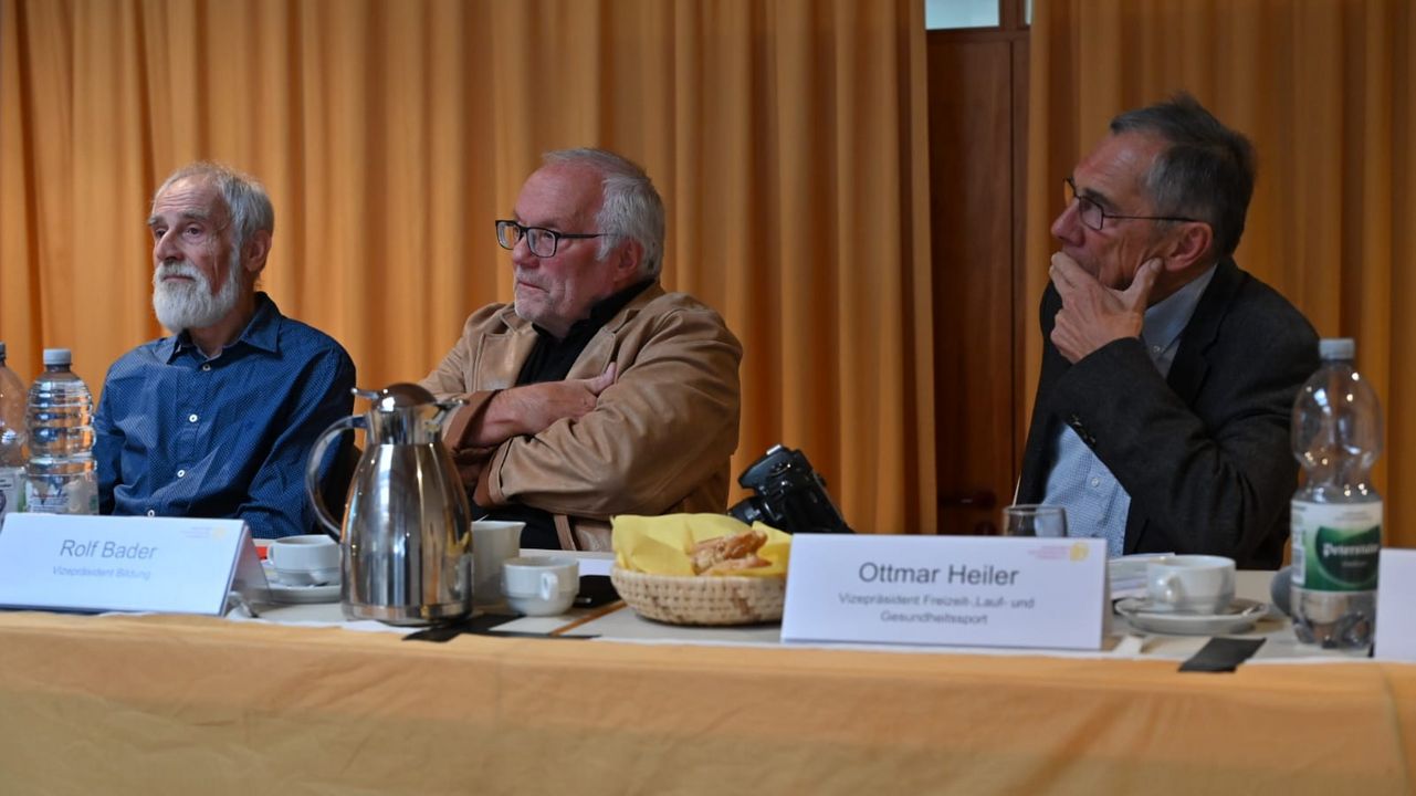 Mit stehendem Applaus würdigten die rund 100 anwesenden Ehrengäste und Delegierten im Dorfgemeinschaftshaus Weildorf das außerordentliche Engagement dreier äußerst verdienter Präsidiumsmitglieder. Wilfried Pletschen (Vizepräsident Wettkampf, Kirchzarten), Rolf Bader (Vizepräsident Bildung, Weinheim) und Ottmar Heiler (Vizepräsident Freizeit-, Lauf und Gesundheitssport, Löffingen) hatten bereits im Vorfeld bekannt gegeben, dass sie altersbedingt nach vielen Jahren nicht mehr zur Wiederwahl antreten. Alle drei wurden zum Ehrenmitglied des Badischen Leichtathletik-Verband ernannt.